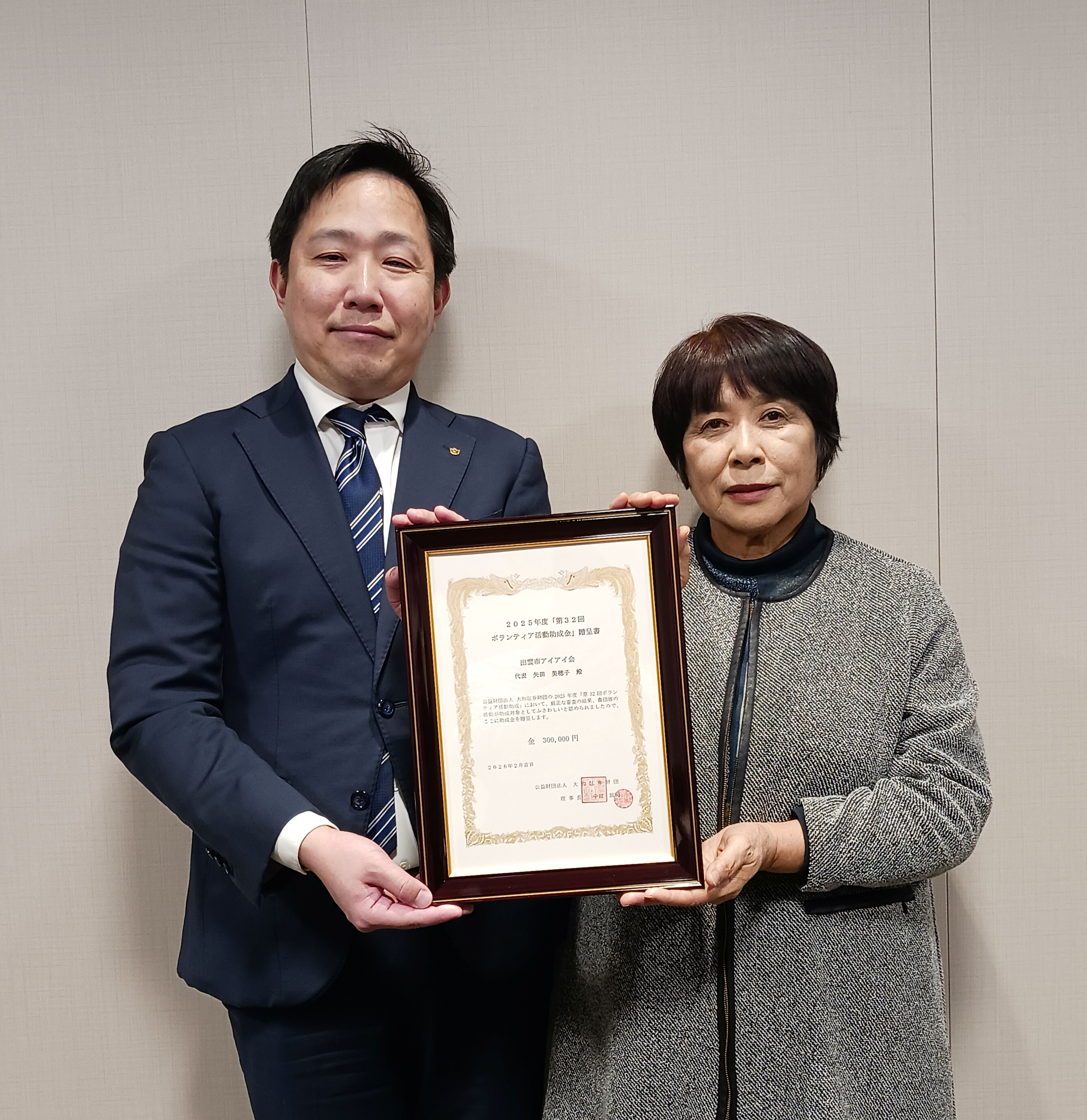 - 2026/03/03 地域の活動 出雲市アイアイ会&西田にじいろ食堂へ大和証券財団「第32回ボランティア活動助成」助成金贈呈