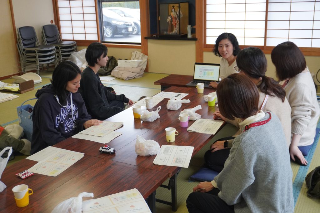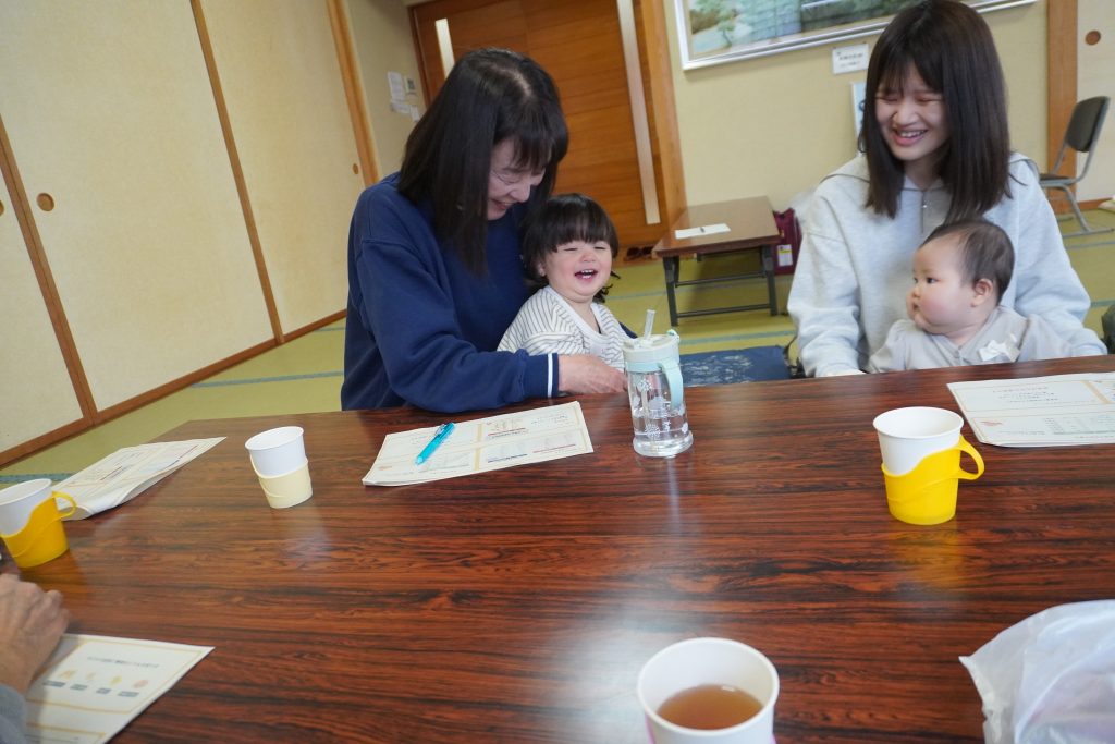 今回は3組の親子が参加され、子ども同士の触れ合いはもちろんお母さん同士の交流も弾みます。講演中にお子さんが動き回っても、地域スタッフが優しく見守っているため、お母さんが自分自身の学びやリフレッシュに集中できるのも、このサロンの素敵なところです。