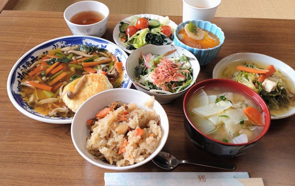参加者からは、「野菜たっぷりで健康になった気がする。減塩、頑張ります!」、「多伎の男性は料理の腕前がすごい。薄味だと野菜本来の味が楽しめますね。」、「将来、独居になっても『料理難民』にならないよう努力したい。次回もぜひ!」と喜びの声がありました。