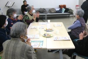 当日は20人が参加され、フルートの演奏や健康体操、認知症クイズもあり、にぎやかな雰囲気。また、テーブルを囲んでゆっくりお茶を飲みながら介護経験やこれからのことなど、認知症について和やかにお話をされました。