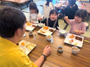 また、子ども連れのお父さんは「妻が仕事のため、自分ひとりで子どもの面倒をみているので、すごく助かりました」と話し、手作りのおいしい食事を食べながら和やかな時間を過ごされました。