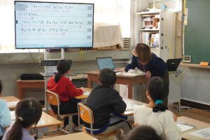 この日は、点訳ボランティアグループ「出雲市アイアイ会」のみなさんを招き、点字に挑戦!初めての体験に少しどきどきしている様子の児童たち。慣れたところでオリジナル名刺を作り、「これを渡したら目が見えづらい人でも読めるね!」と笑顔になっていました。