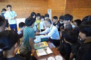 お話では、障がいがあることで困ること、生活の中で工夫していることなどリアルな暮らしを教えていただきました。なかでも子どもたちは日常生活を支えるお助けアイテムに興味津々!触ってみたり、「これはなに?」と質問してみたり、佐藤さんを囲んでにぎやかに学びを深めました。
