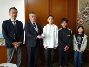 須佐小学校のみなさんから赤い羽根共同募金を受け取りました!