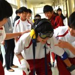 また、アイマスクと車いす体験では、安全を確保しながら移動したり、相手を不安にさせないよう声を掛けたりと実践を通して必要なサポートを学びました。