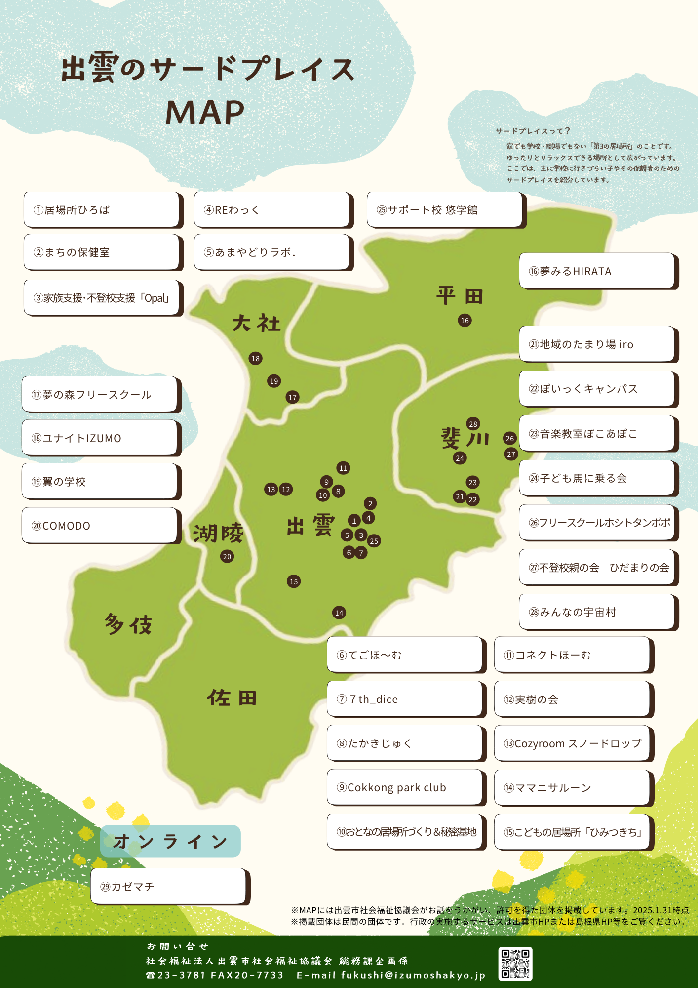 \出雲のサードプレイスMAPはこちら/ ※MAPは随時更新しております。(最終更新R7.9.24) ※本ページは暫定的に開設しております。変更の可能性がありますのでご留意ください。